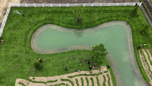 ปรับพื้นที ่ก่อนปลูก ด้วยทีมงานคุณภาพ มืออาชีพ มีลูกกลิ้งบดหญ้าหลังปลูกให้ และมีดินชีวภาพแถมให้ฟรี